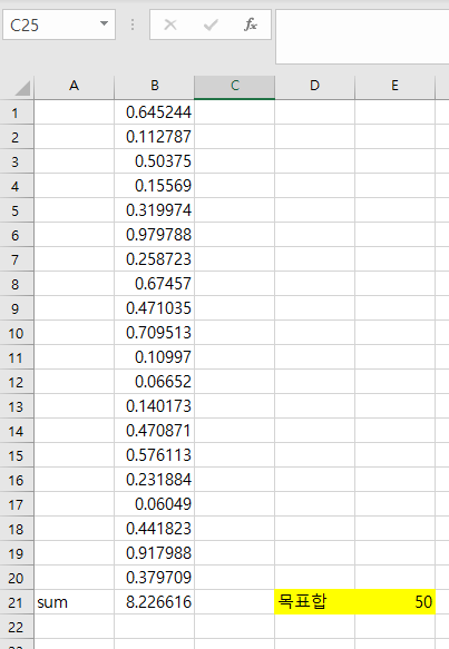 (엑셀 통계) 58. 합이 일정한 임의 숫자 추출하는 방법 (실수편).xlsx