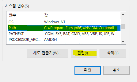 환경변수를 클릭합니다. path를 찾고 편집을 클릭합니다.