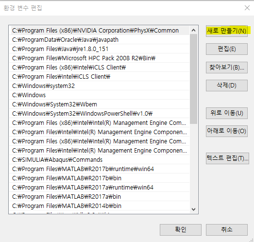 새로만들기를 클릭하고 위에서 추가하기로 한 경로를 하나씩 추가해줍니다.