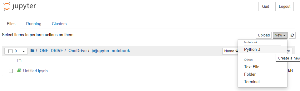 아마 경로가 C드라이브일 것입니다. 앞으로 작성할 내용들이 저장될 폴더를 선택합니다. 우측에 New를 클릭하고 Python 3를 클릭합니다.