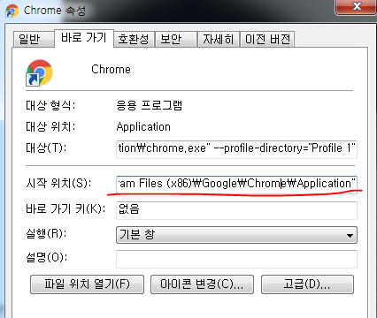 크롬 경로에 실행파일 이름은 붙여서 경로를 완성합니다. /chrome.exe 를 붙여주시면 됩니다.주의할 점은 \ 대신 슬레쉬 / 를 입력하셔야 합니다.