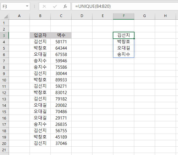 먼저 어떤 사람이 있는지 unique 함수로 확인합니다.