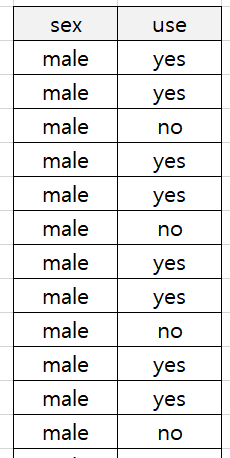 sex 열과, use 열을 만들어줘야 합니다. 먼저 sex 열을 만들어봅시다.