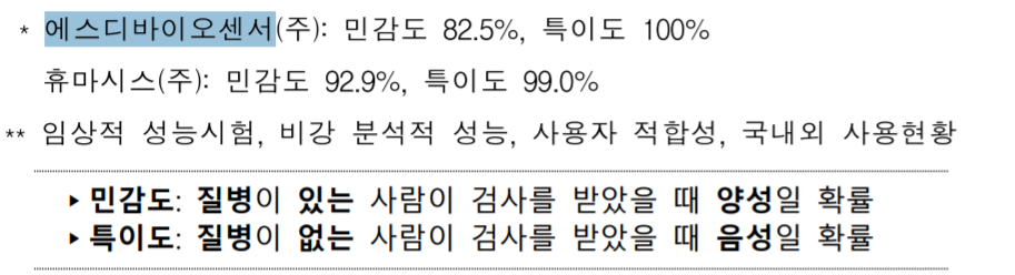 민감도와 특이도는 키트에서 제공한다. 아래는 식약처 보도자료이다.