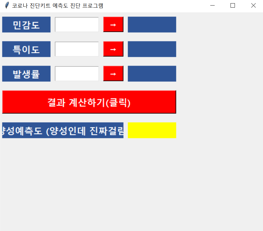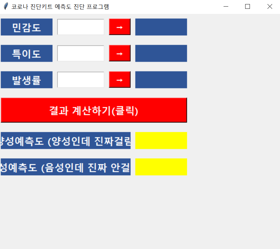 root.title('코로나 진단키트 에측도 진단 프로그램')