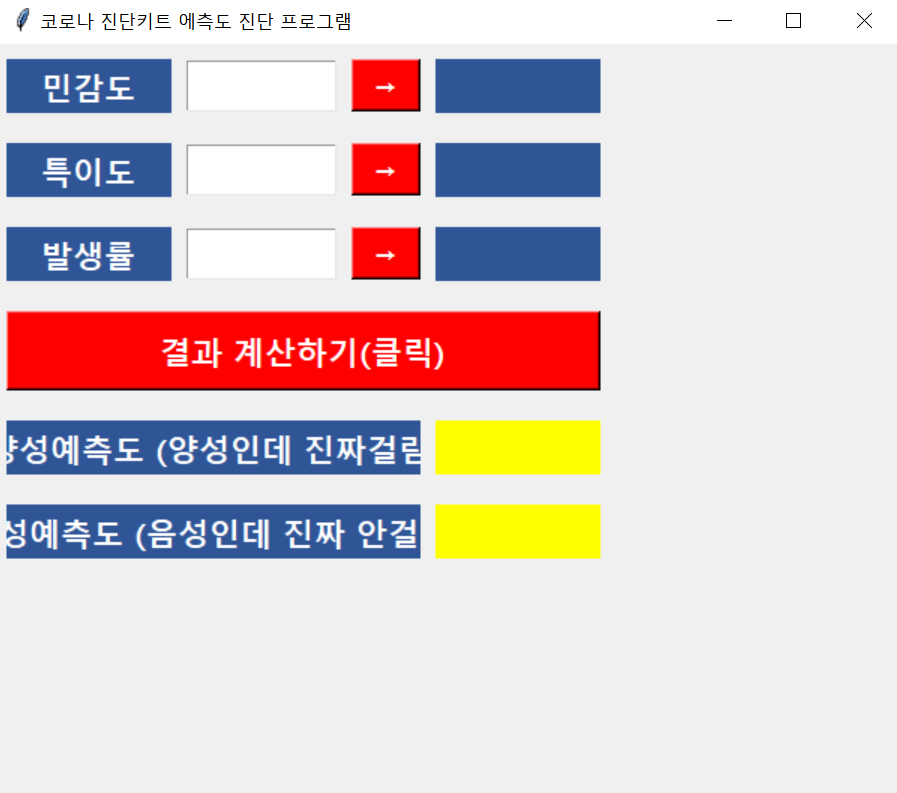 root.title('코로나 진단키트 에측도 진단 프로그램')