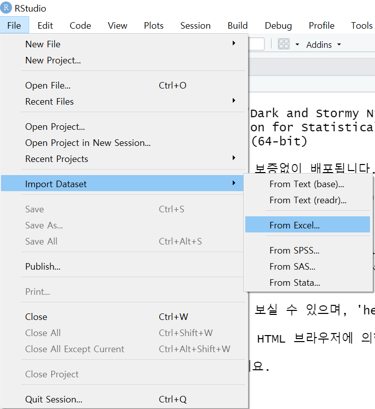 [File]-[Import Dataset]-[From Excel] 을 클릭합니다.