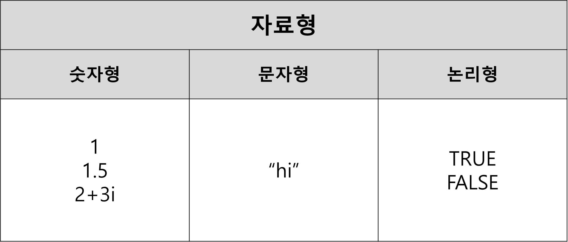 R에서 자료형은 숫자형과 문자형으로 나뉘며, 숫자형은 그냥 입력하면 되고 문자형은 따옴표를 사용한다는 사실만 알고 넘어갑시다.