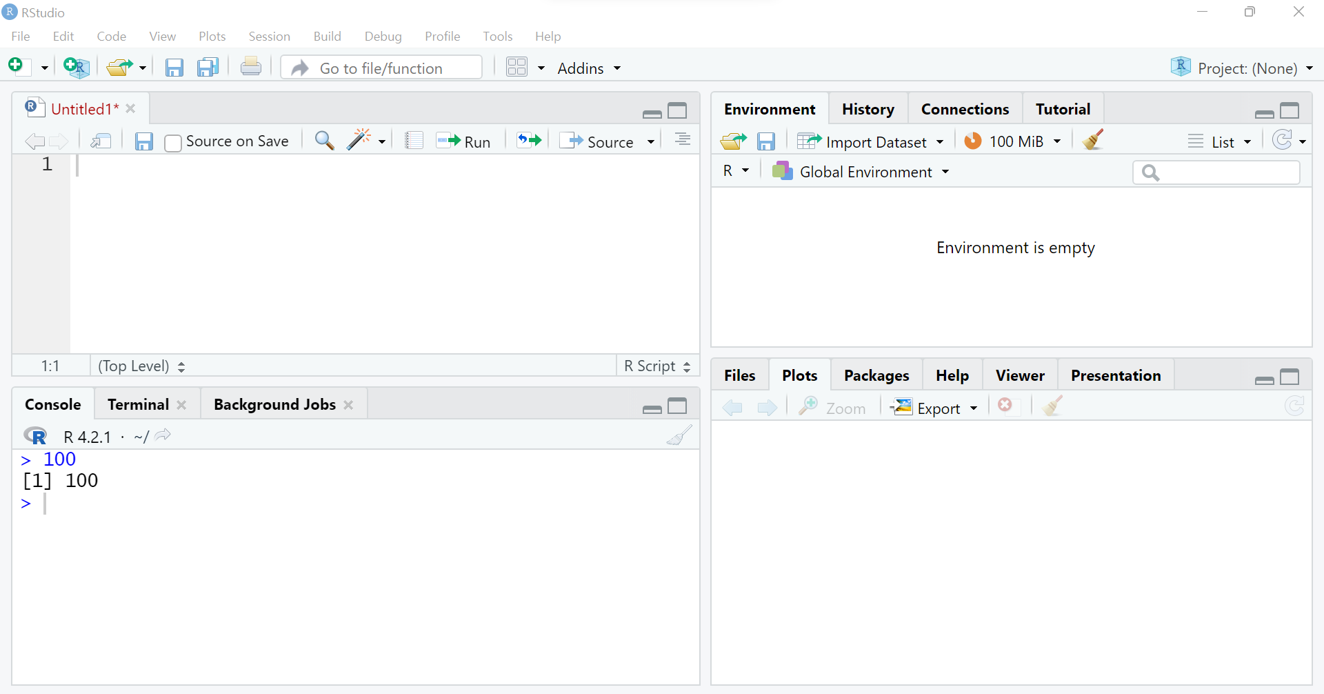 오늘은 변수라는 것을 배울겁니다. 변수는 R에서 없어서는 안되는 존재입니다. 변수가 있기 때문에 코딩이 아주 편해졌습니다. R콘솔에 숫자 하나를 입력해봅시다.