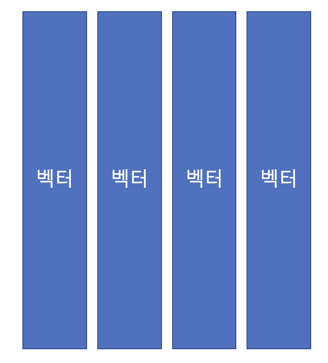 데이터프레임은 벡터를 이용하여 만든 자료구조입니다. 벡터를 아래와 같은 형태로 연결하여 데이터프레임을 만들었습니다.