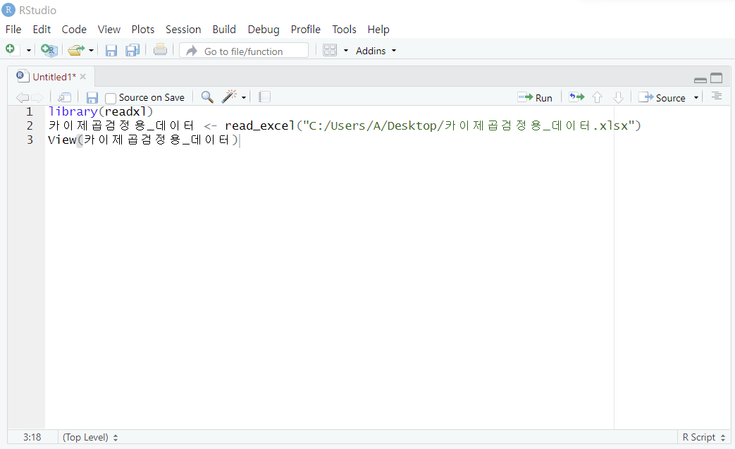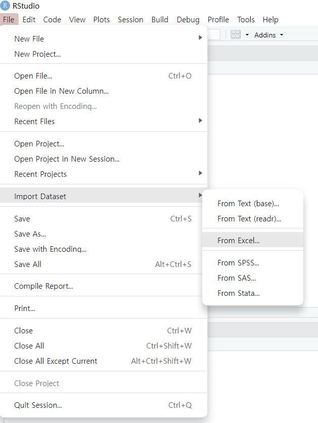 R에서 아래 메뉴를 클릭합니다.