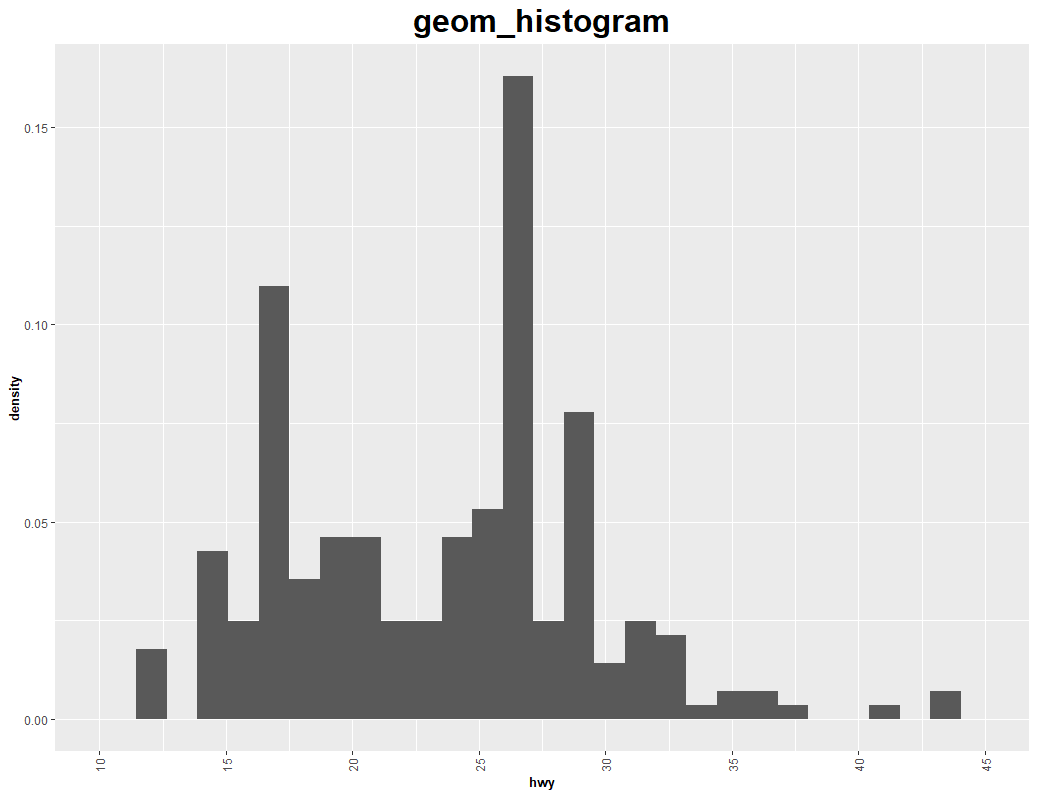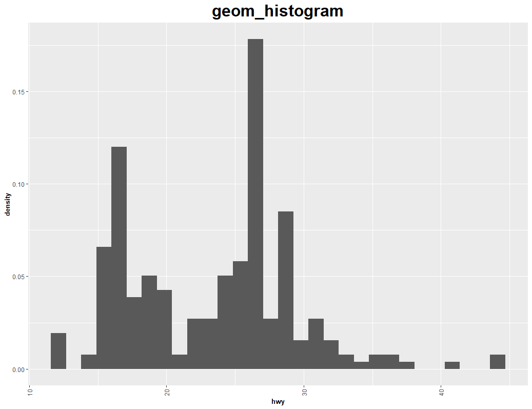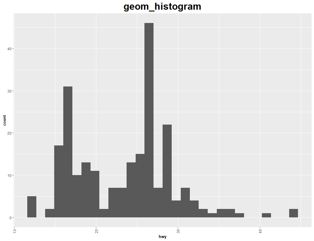 labs(title="geom_histogram",x='hwy')+ #제목, 축이름