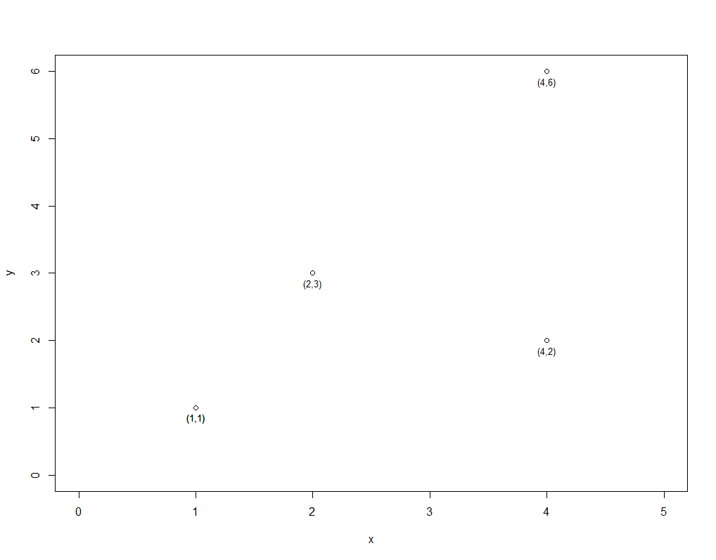 text(x[i],y[i],labels=paste0('(',x[i],',',y[i],')'),pos=1,cex=0.8)