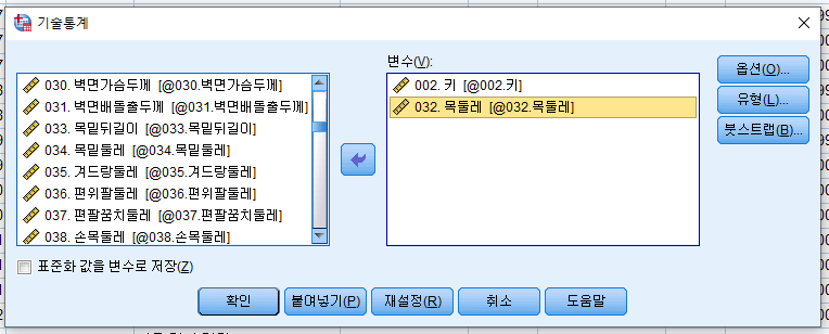 2) 궁금한 변수들을 선택합니다. 동시에 여러변수를 선택해도 됩니다.