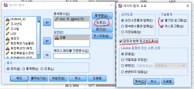 이번 시간에는 기술통계량, 히스토그램, 상자수염그림, QQ-plot, 정규성검정 결과를 출력하는 방법을 알아봅시다.