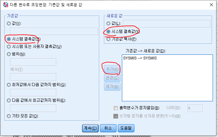4) 먼저 결측값을 설정합시다. 아래와 같이 클릭합니다.