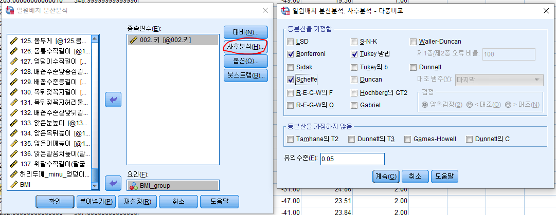 4) 사후분석을 클릭하고 아래와 같이 선택해줍니다.
